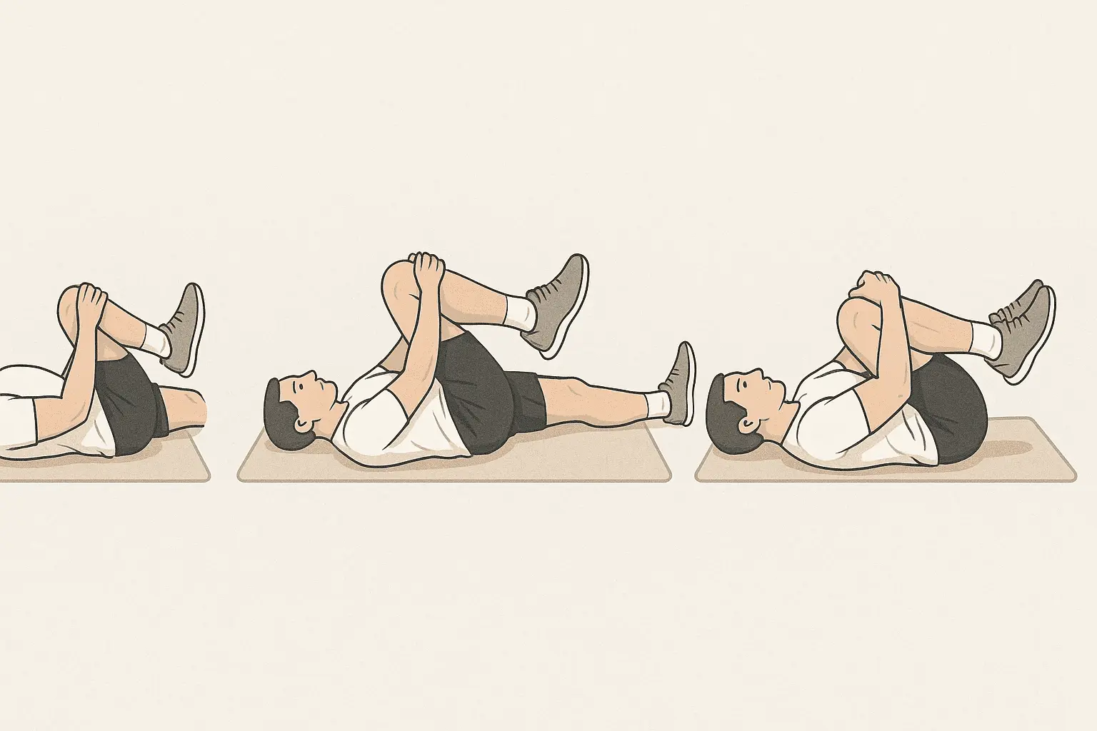 - Finalmente, lleva las dos rodillas al pecho y mantén 20 segundos más.